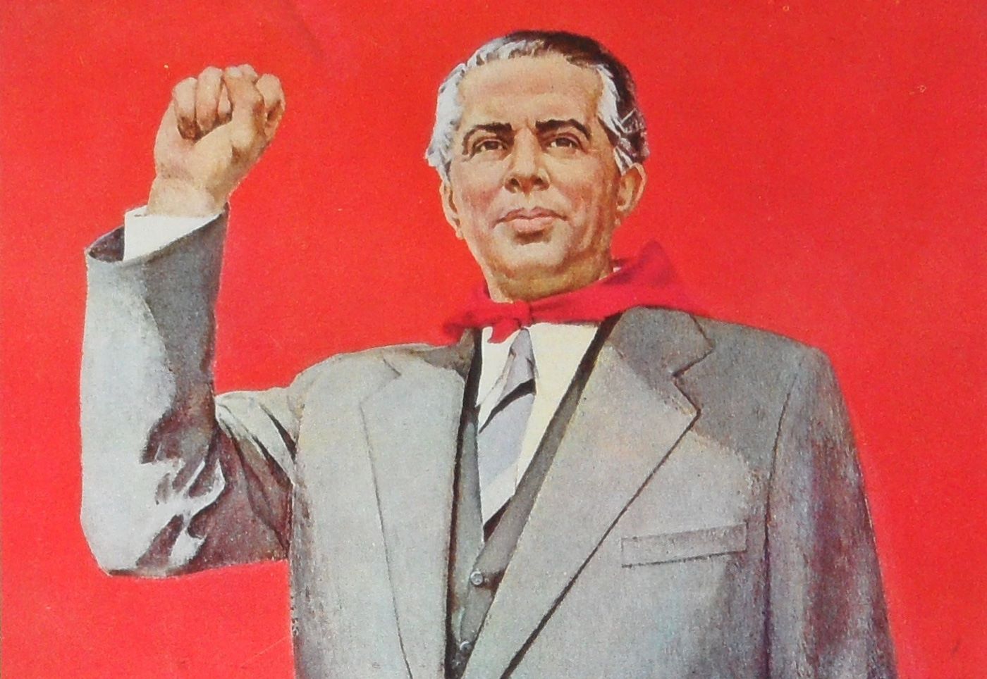 [ Ilustrimi ngjitur: Pikturë e Vilson Kilica – “Shoku Enver Hoxha”, 1976 (detaj) ]