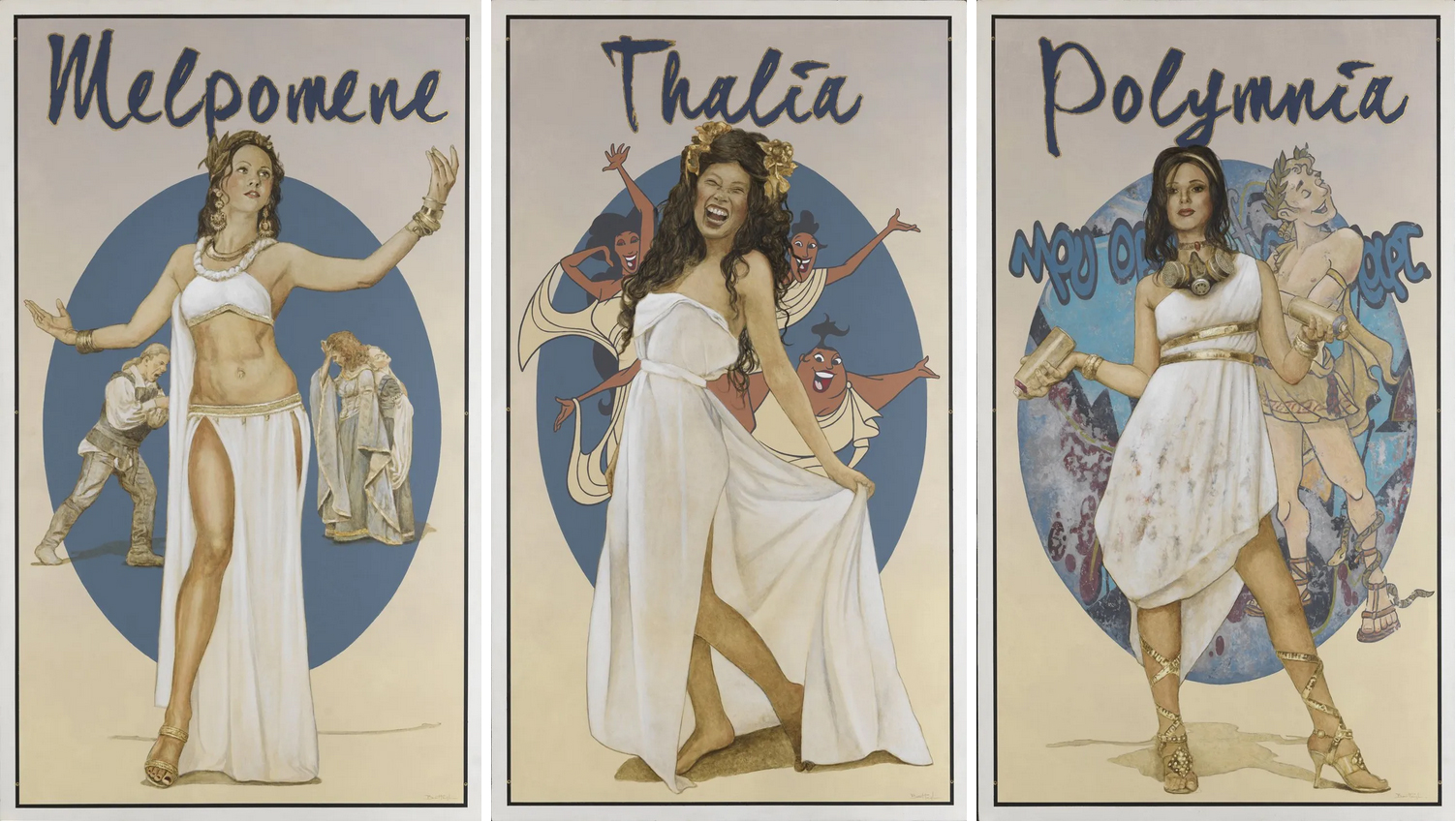 …sipas artistit holandez Bart Heijlen, muzat moderne tani pakashumë kështu janë, ato klasiket ishin fare ok mirëpo tani dhe qasjet janë modernizuar paska, edhe stilet, edhe modat e kështusoj dhe shijet do jenë adaptuar sadopak me modernizmin, muzat moderne shpesh vishen me pëlhurash të thjeshta të Versace, apo aty ku vishen djallushet në Prada : ) herë diç si fustan-bardha, herë me sandalka e herë me takash të larta si Meduzat