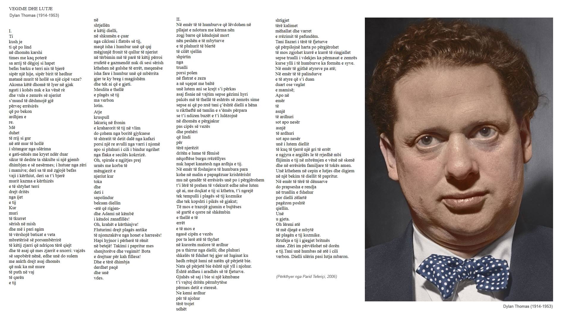 Dylan Thomas (1914-1953) – Vegime dhe Lutje