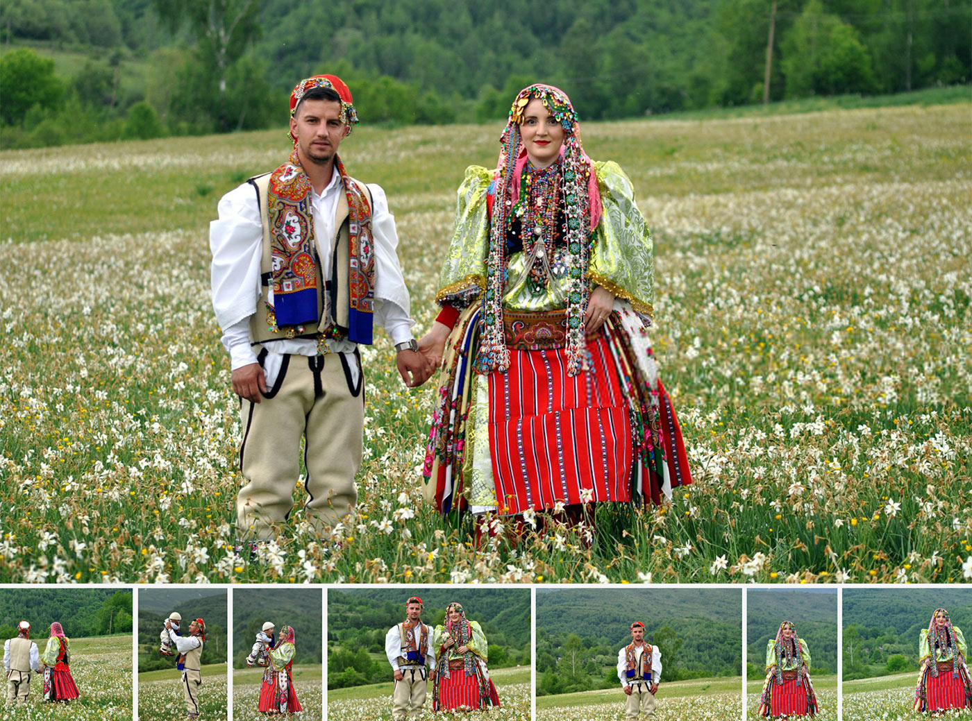 (s. guraziu – ars poetica, shk. 24 – fotot nëpërmjet Getty, e edhe përshkrimi në Anglisht nga Admiri, nga fotografi) – Shpëtim Draga, një i ri nga Shishtaveci i Shqipërisë, me kostumin tradicional të goranëve, ecën me gruan dhe djalin e tij të vogël në një lëndinë plot me narcisë të egër. Shpëtimi mban në krahë djalin e tij të veshur si të afërmit e tij. Shpëtimi, si shumë të rinj nga zonat rurale, e ka gjetur lumturinë e vet në Evropën Perëndimore, por pushimet verore i shfrytëzon për t’i vizituar prindërit. Goranët janë një grup i vogël etnik që jetojnë në kufirin mes Shqipërisë, Kosovës dhe Maqedonisë së Veriut. Në Shqipëri, goranët jetonin në sistemin më të izoluar (gjatë diktaturës komuniste), të ngjashëm me atë të Koresë Veriore. Dhe për më shumë se 50 vjet nuk kishin asgjë, nuk kishin predispozita për një jetë normale. Të shkëputur nga pjesa tjetër e botës por me vetëdijen të lartësuar, e ruanin dashurinë për të vetmen gjë që u kishte mbetur (kulturën e tyre, traditat), dhe që asnjë regjim nuk mund t’ua pezullonte. Ua dogjën librat, ua rishkruan historinë dhe e mbytën sistematikisht ekzistencën e tyre, por ata të regjimit dështuan. Ky çift i ri i martuar po i kthehet zanafillës (kulturore) dhe fatit të tyre.