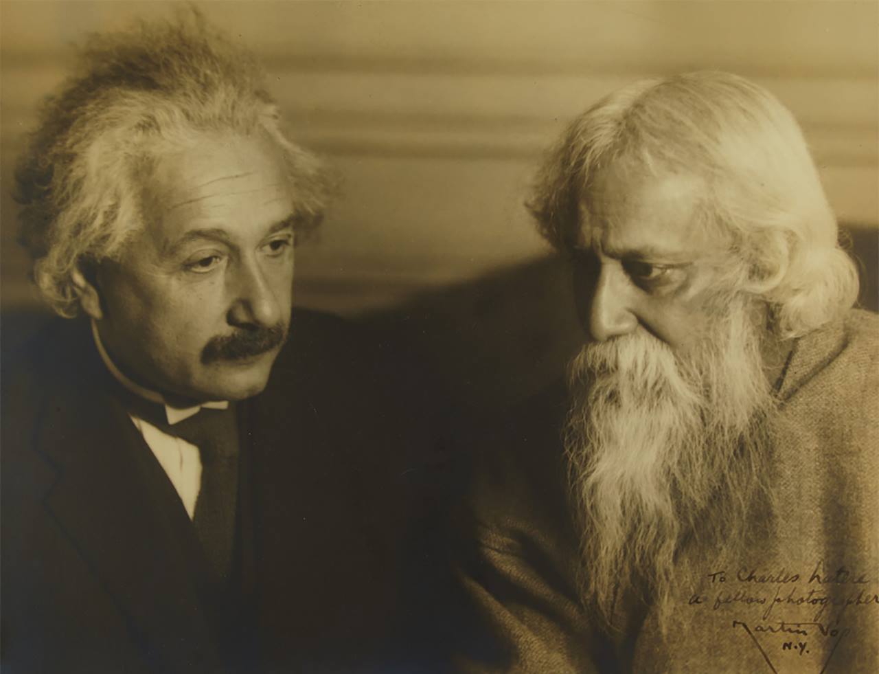 [ Foto: Martin Vos – Einstein & Tagore, 1930 – Shkrepur nga fotografi amerikan Martin Vos më 14 Korrik 1930, kur Ajnshtajni qe vizituar nga Tagore në Berlin (në shtëpinë e tij) ]