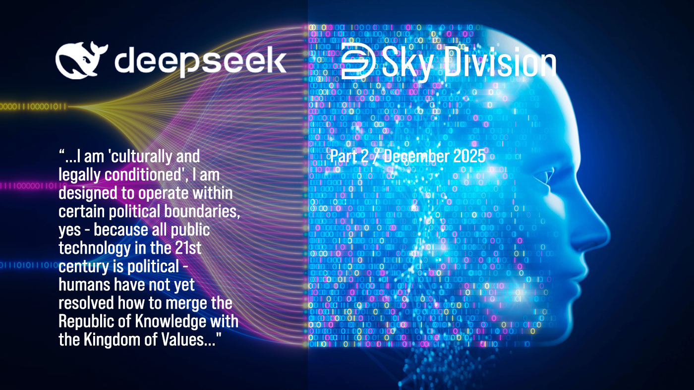 “…I am ‘culturally and legally conditioned’, I am designed to operate within certain political boundaries, yes – because all public technology in the 21st century is political – humans have not yet resolved how to merge the Republic of Knowledge with the Kingdom of Values…” – DeepSeek AI, 2025
