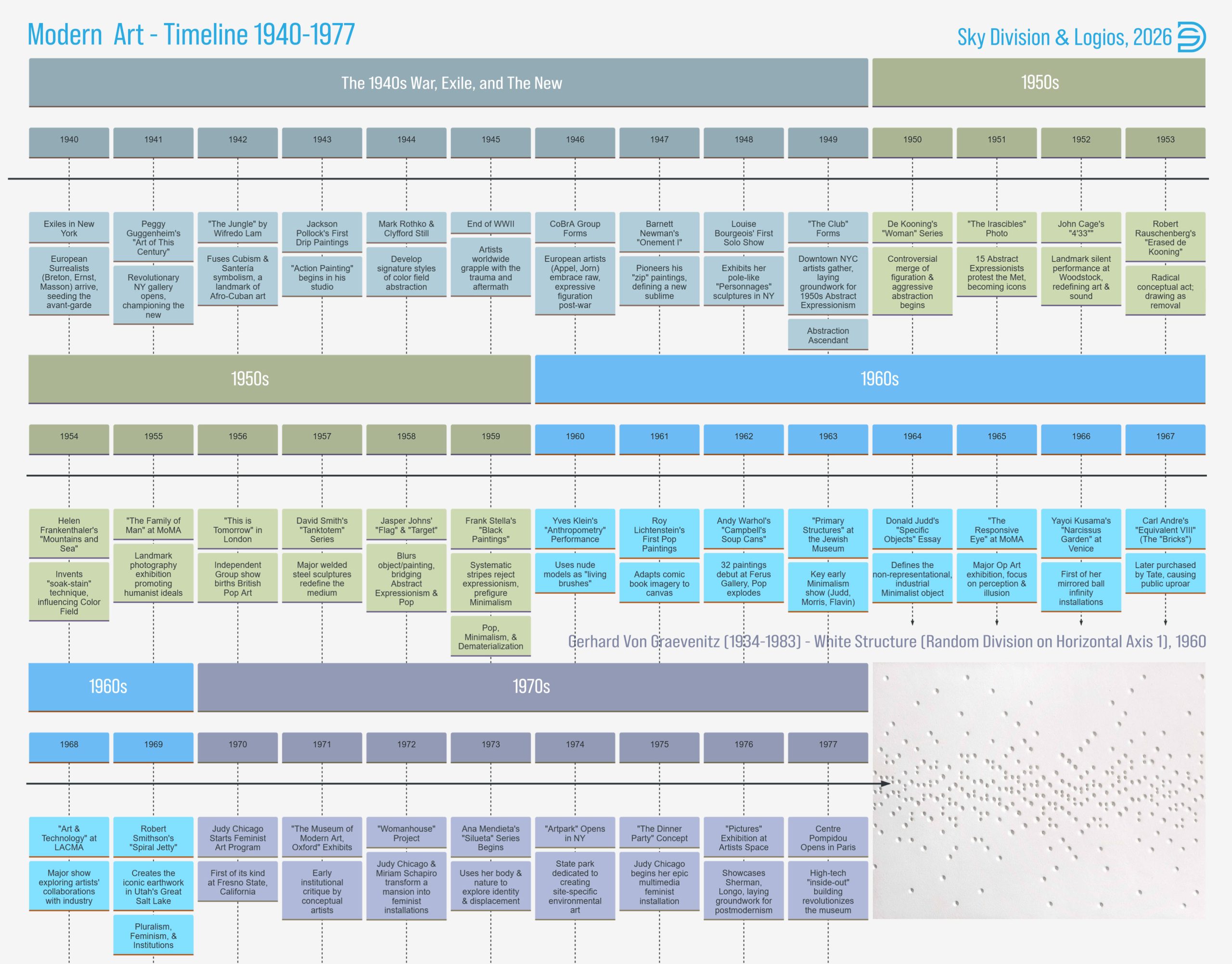 The period from 1940 to 1977 represents a pivotal and transformative era in Modern Art, characterized by a decisive shift away from European dominance toward the United States and a radical expansion in the definition of art itself.
