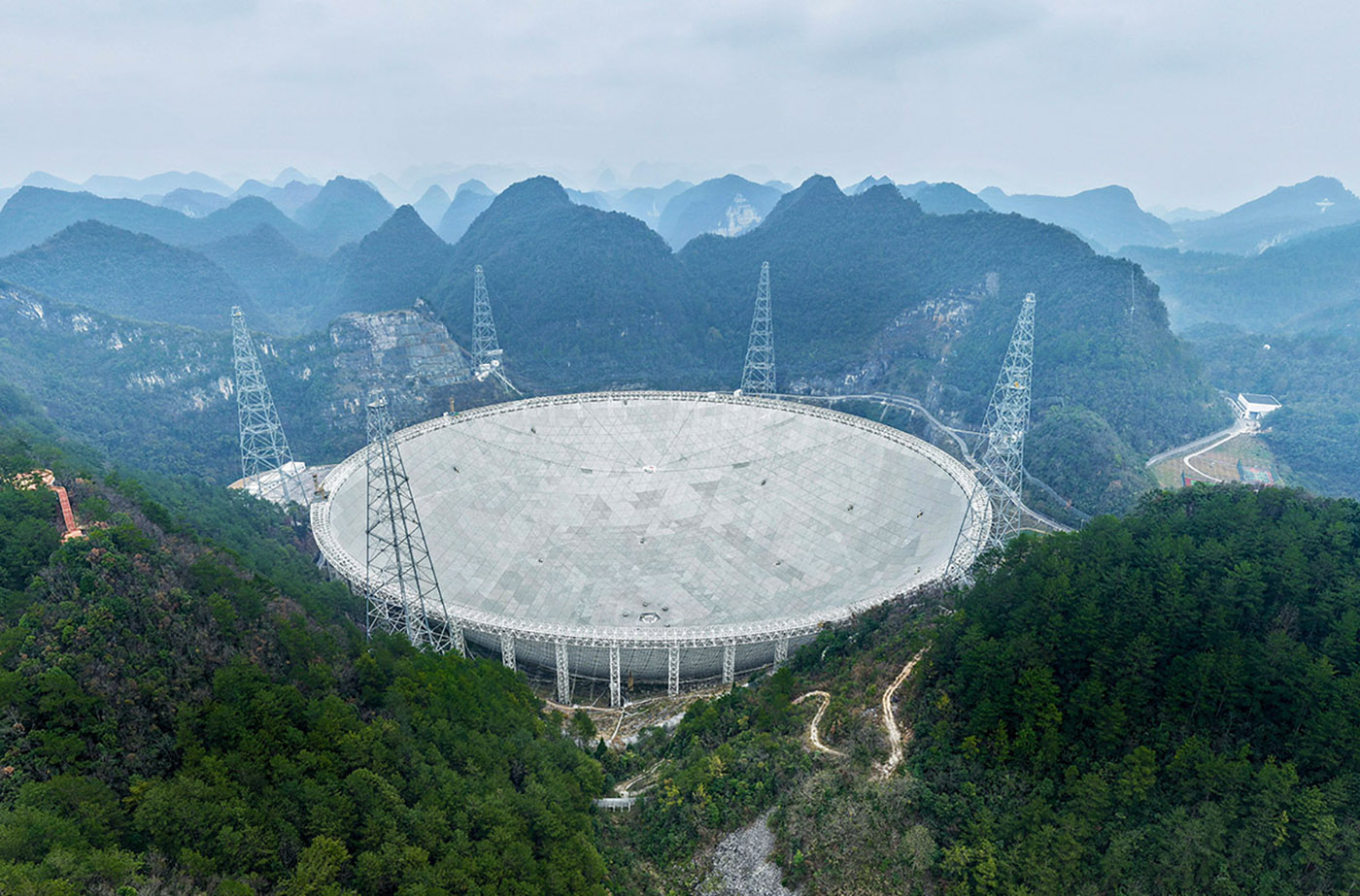 This aerial drone photo is relatively recent one (Jan. 16, 2026), it shows China’s 500 m Aperture Spherical Radio Telescope FAST under maintenance in southwest China’s Guizhou Province. Through studying the observation data of China’s gigantic radio telescope, an international research team has uncovered compelling new evidence supporting a binary-system origin for at least some fast radio bursts, one of the most enigmatic phenomena in modern astrophysics. These findings made by the research team, led by astronomers from the Purple Mountain Observatory of the Chinese Academy of Sciences, are based on observations using FAST, and have been published online in the journal Science.