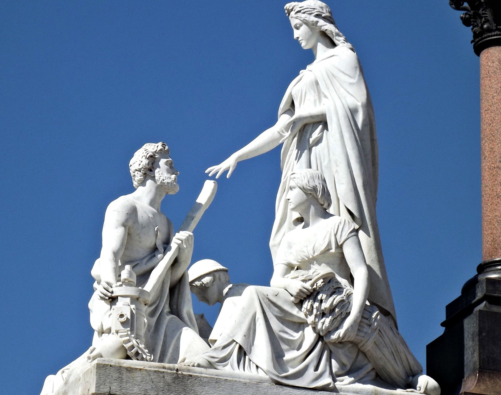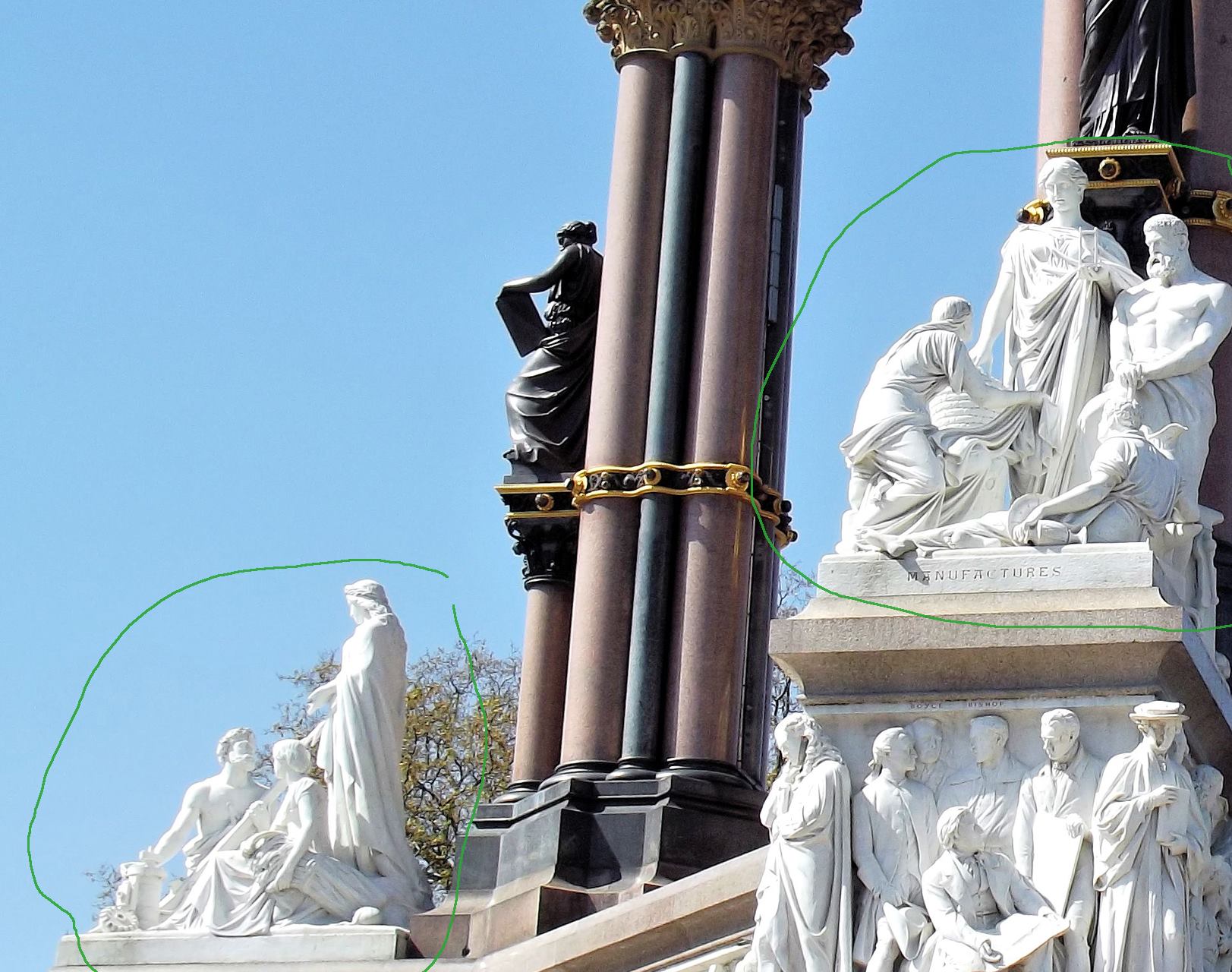 …grup skulpturash në kuadër të programit për Albert Memorial, Londër, i projektuar nga George Gilbert Scott, i cili program përfshin katër grupe alegorike skulpturale që i përshkruajnë ose i paraqesin shkencat industriale të erës viktoriane (Bujqësinë, Tregtinë, Teknologjinë dhe Prodhimin (ose Manufakturën) – William Calder Marshall (1813-1894) – “Bujqësia“, 1868 / Thomas Thornycroft (1815-1885) – “Tregtia“, 1876 / John Lawlor (~1820-1901) – “Teknologjia“, 1876 / Henry Weekes (1807-1877) – “Prodhimtaria“, 1870