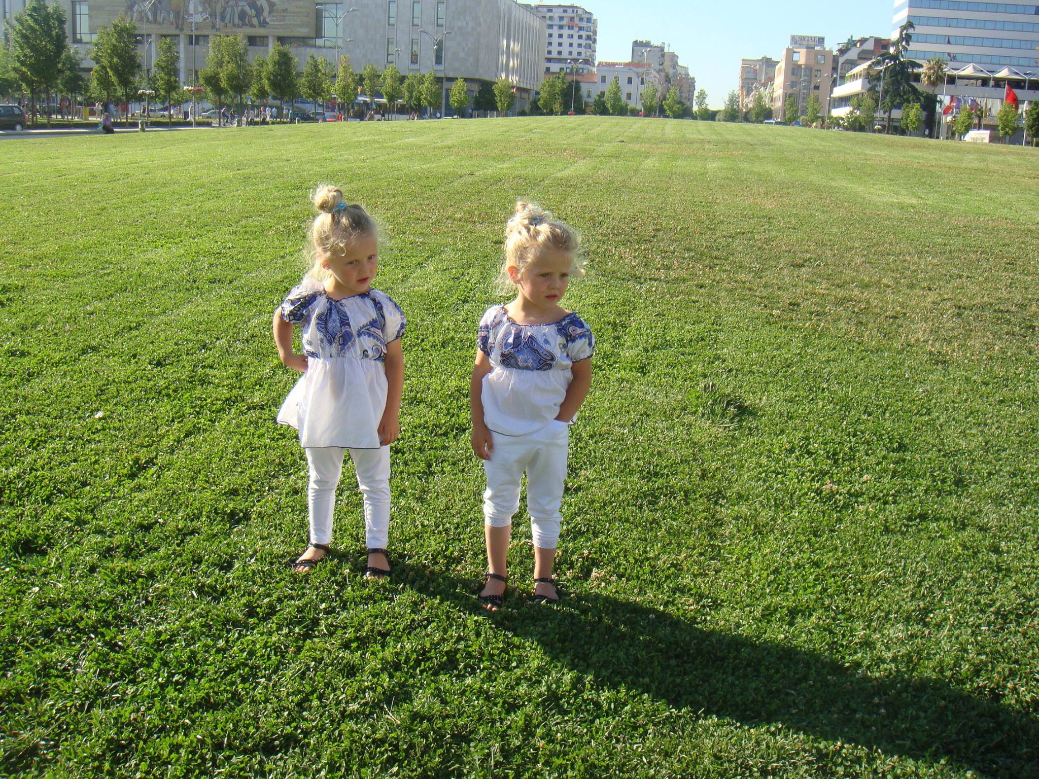 …dy engjëj të vendlindjes (Therandë, Kosovë) në sheshin e diellosur të Tiranës – nuk ua di emrat, realisht nuk i njoh engjëllushet… pasi të vogla : ) fotoja qe bërë nga babai i tyre (atë e njoh), 2-3 vite më parë…