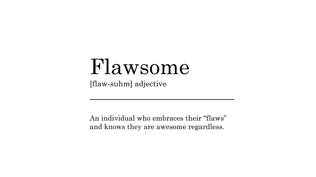 Flawsome, it’s an awesome word! flawsome = dikush që ndjehet okidoki me të metat e veta dhe i thotë vetes se është perfekt : )