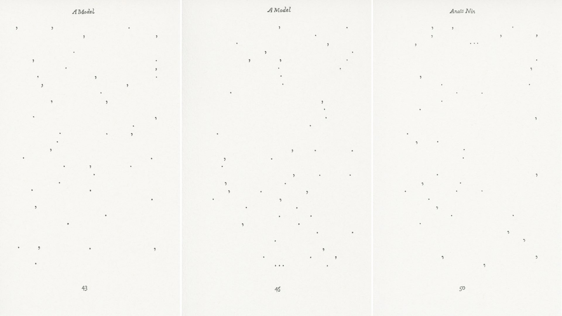 Poezinë pa fjalë të Carolyn Thompson (të ashtuquajtur “poezi e pikësimit”) e kuptova plotësisht vetëm pas “studimit” të subjektit që autorja Thompson e trajton – “Gulçimi për Frymën” është një seri prej dhjetë “vizatimesh” (duke përdorur shenjat e pikësimit) nga libri erotik “Eros Unbound” (Erosi i Lirë) të autores Anaïs Nin, në secilën prej dhjetë faqeve të vëllimit origjinal me tregime erotike, Anaïs Nin e përshkruan një karakter që përjeton orgazmin. Pra Carolyn Thompson i largon fjalët, na i shfaq vetëm titujt, numrat e faqeve, presjet dhe pikat (dmth. aty ku, në pjesët narrative të librit, personazhit i merret fryma nga deliri orgazmik : )