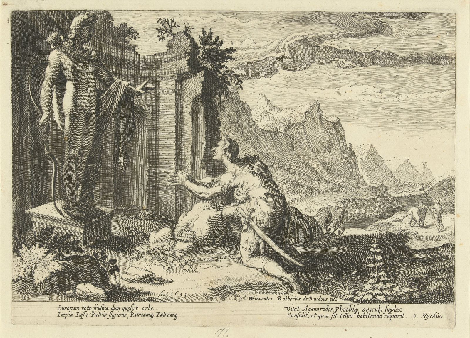 – Kadmusi konsultohet me Orakullin e Delfit se ç’duhet të bëjë tutje pasi nuk ia ka dalur ta gjejë motrën e vet, Europen (Studio e Hendrick Goltzius, 1615 – Rijksmuseum, Amsterdam)