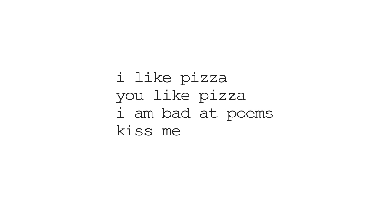 “më pëlqen pizza / të pëlqen pizza / s’ia them hiç poezisë / më puth”