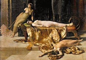 …kur Perandoria Romake e mori kontrollin mbi Egjiptin në v. 44 pes., Kleopatra vendosi t’i merrte jetën vetes, më mirë të vdiste sesa e gjallë t’ia dorëzonte perandorit të ri romak, Oktavianit.