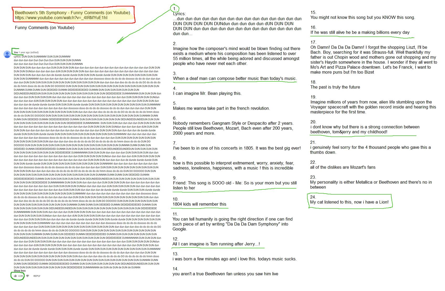 …para disa ditësh më duhej linku i Simfonisë së 5-të të Betovenit… dhe u habita kur pashë “You” tek komentet në Youtube (u çudita pasi s’kam komentuar kurrë – psh. në Fb nëse tek komentet thotë “You”, fjala është për ndonjë koment tonin, që vërtet kemi komentuar) – komenti shfaqej që në krye, dhe vazhdonte me “dun dun dun…” (gjoja si lirikë, si tekst i simfonisë) – e kuptova që “You” ishte thjesht një pseudo-emër i dikujt…