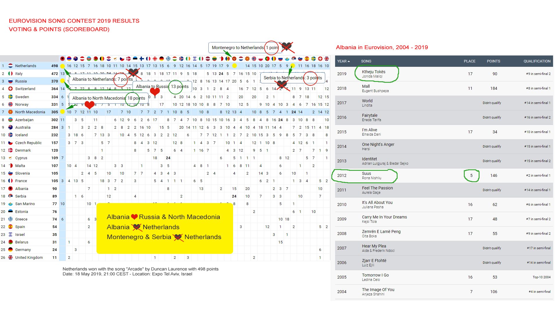 …gjithsesi, mua më pati interesuar të “analizohen” pakëz pikët e 2019, sesi më dukej që disa gjëra s’janë “okidoki”, me gjasë shtetet ballkanike ia bëjnë me “hile” Lulandisë, sidomos Shqipëria – dhe hm, kam përshtypjen teoria ime doli t’jetë fort e “saktë”, dyshimi im teorik mbështetej në faktin… apo dhe s’ka nevojë tani për fjalë, kur njeriu pohon diç natyrisht duhet ta mbeshtesë dhe me fakte (andaj shih grafikën : )