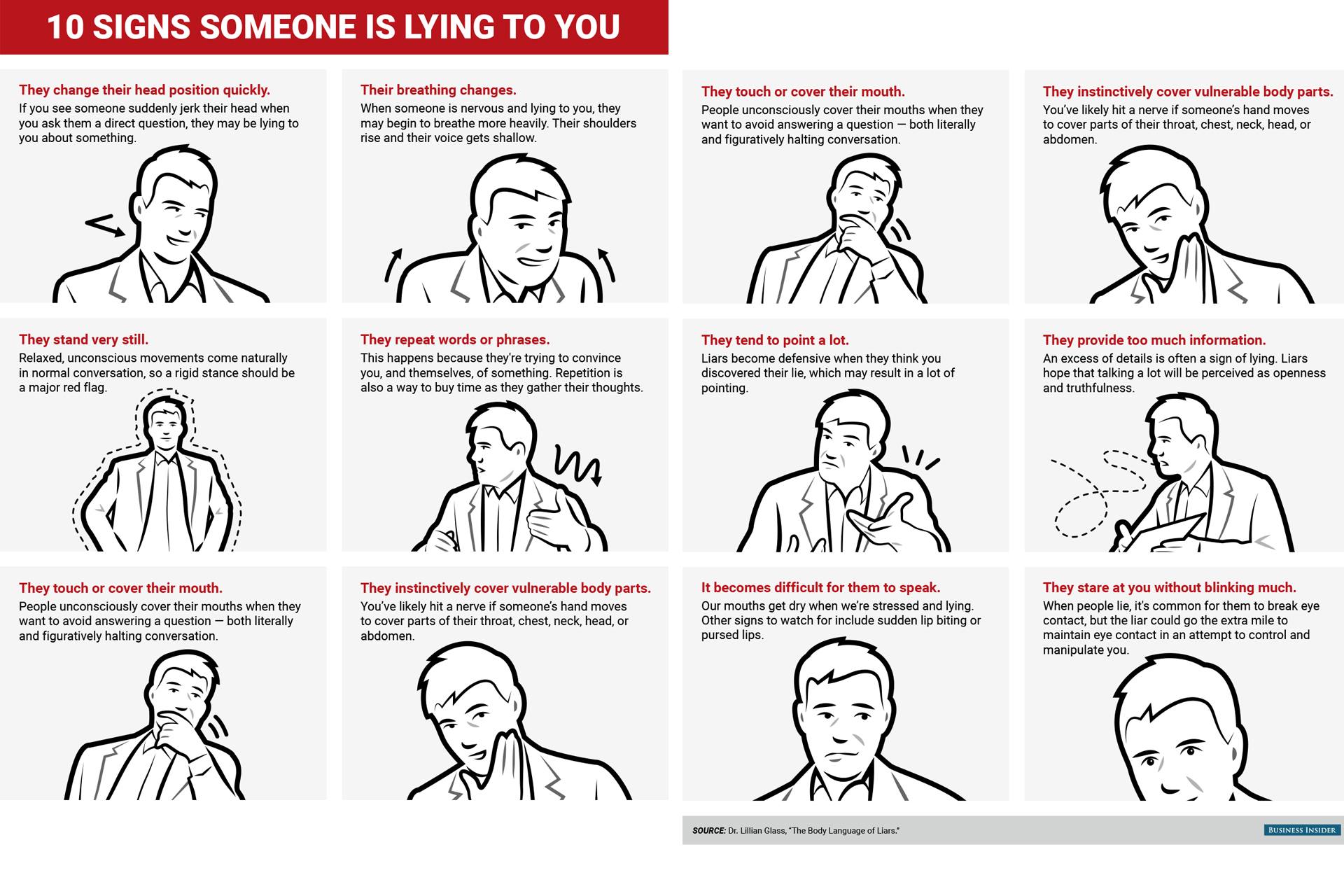 Kjo grafika (ngjitur) qenka e bazuar në ekspertizat e Dr. Lillian Glass, e cila ekspertizë rishtas e bazuar në mësimet e saj ndër vite e vite nga “gënjeshtrat e politikanëve”. Dr. Lillian Glass dikur paska punuar madje dhe për FBI (shih pra… për t’i zbuluar gënjeshtrat e politikanëve duhen top-ekspertë, përndryshe FBI s’do ta kishte punësuar : )